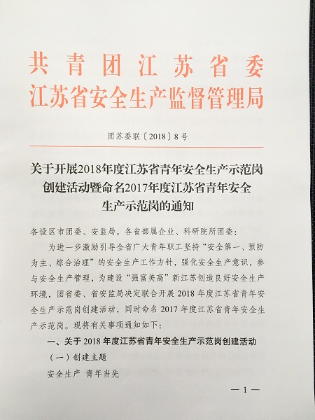 近日,共青團江蘇省委、江蘇省安全生產(chǎn)監(jiān)督管理局共同舉辦了“2018年度江蘇省青年安全生產(chǎn)示范崗創(chuàng)建暨命名2017年度江蘇省青年安全生產(chǎn)示范崗”活動,天泓集團凱潤店售后車間獲“省青年安全生產(chǎn)示范崗”殊榮。