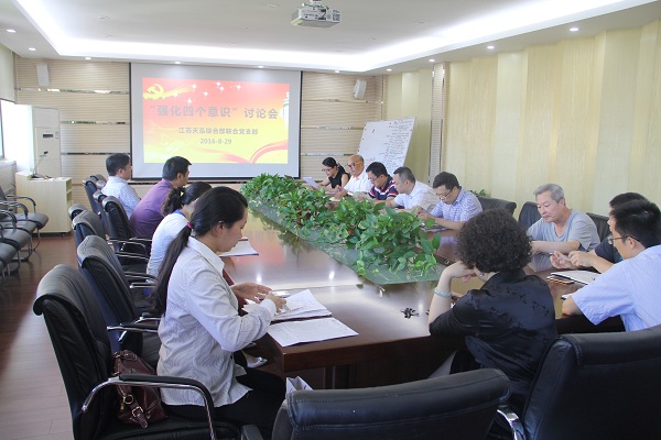 各支部組織學(xué)習(xí)《習(xí)近平總書記視察江蘇重要講話》精神、《習(xí)近平總書記系列重要講話讀本》以及《習(xí)近平用典》、《黨章知識選粹》、《做合格黨員》微視頻,并圍繞“政治意識強不強”、“大局意識強不強”、“核心意識強不強”、“看齊意識強不強”展開大討論。通過學(xué)習(xí),黨員干部意識到要時刻保持清醒的政治頭腦,保持敏銳的政治觀察力和鑒別力,堅定正確的政治立場,始終堅守對馬克思主義的信仰、對中國特色社會主義和共產(chǎn)主義的信念、對黨和人民的絕對忠誠。