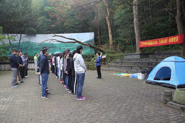 天泓集團(tuán)董事長(zhǎng)在開幕式上做動(dòng)員講話,提出參與此次拓展培訓(xùn)的員工都是天泓優(yōu)秀的管理人員,希望大家能通過此次拓展有所收獲。參訓(xùn)員工受到很大鼓舞,精神飽滿地投入到接下來的培訓(xùn)活動(dòng)中去。在教練的帶領(lǐng)下,大家很快完成了破冰,分組完成了“DISC性格分析”、“暗戰(zhàn)”、“杯子舞”等團(tuán)隊(duì)建設(shè)項(xiàng)目。第二天上午,在短暫的熱身之后舉辦了“趣味運(yùn)動(dòng)會(huì)”,下午進(jìn)行了4D團(tuán)隊(duì)建設(shè)的專業(yè)培訓(xùn)。最后,天泓集團(tuán)副總經(jīng)理對(duì)此次拓展培訓(xùn)進(jìn)行了全面總結(jié)。