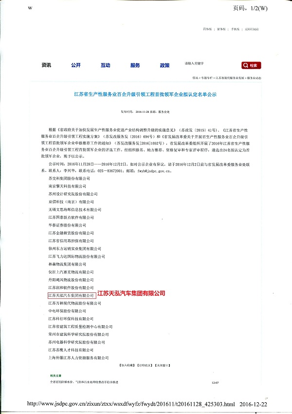 天泓集團(tuán)多次組織相關(guān)部門(mén)進(jìn)行研討,依據(jù)企業(yè)自身戰(zhàn)略定位和發(fā)展特點(diǎn),圍繞生產(chǎn)性服務(wù)業(yè)共性服務(wù)技術(shù)、商業(yè)模式和服務(wù)產(chǎn)品的自主創(chuàng)新,以及行業(yè)標(biāo)準(zhǔn)、品牌創(chuàng)建等為核心,編制了天泓集團(tuán)“惠換車(chē)”二手車(chē)電商平臺(tái)的申報(bào)材料。經(jīng)過(guò)材料準(zhǔn)備、網(wǎng)絡(luò)申報(bào)、項(xiàng)目初審及現(xiàn)場(chǎng)核查等程序,于近日終獲江蘇省發(fā)改委的評(píng)審認(rèn)定,成為首批24家江蘇省生產(chǎn)性服務(wù)業(yè)領(lǐng)軍企業(yè),獲得該項(xiàng)榮譽(yù)的江蘇省省屬企業(yè)僅有3家。