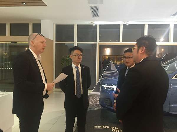 2017年12月29日下午,沃爾沃汽車中國(guó)研發(fā)中心副總裁Jan-Erik Larsson 先生、沃爾沃東區(qū)銷售經(jīng)理周續(xù)展先生一行,在天泓集團(tuán)副總經(jīng)理翟杰的陪同下,到天泓集團(tuán)凱潤(rùn)沃爾沃店視察指導(dǎo),了解4S店的實(shí)際運(yùn)營(yíng)情況。
