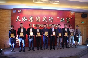 一是優(yōu)化管理,建立健全現(xiàn)代企業(yè)制度。2017年提出業(yè)務(wù)運(yùn)營(yíng)信息化、績(jī)效管理科學(xué)化、培訓(xùn)體系專(zhuān)業(yè)化的科學(xué)、高效管理方式。“業(yè)務(wù)運(yùn)營(yíng)信息化”:提出“一切業(yè)務(wù)要數(shù)據(jù)化,一切數(shù)據(jù)要業(yè)務(wù)化”的信息化建設(shè)宗旨,組建研發(fā)團(tuán)隊(duì)開(kāi)發(fā)企業(yè)BI商務(wù)智能平臺(tái),通過(guò)大數(shù)據(jù)分析輔助經(jīng)營(yíng)決策?!翱?jī)效管理科學(xué)化”:按照“績(jī)效導(dǎo)向、市場(chǎng)決定、效益聯(lián)動(dòng)、能增能減”的原則,建立激勵(lì)與約束相匹配、科學(xué)合理的收入分配制度,激發(fā)各類(lèi)人員積極性?!芭嘤?xùn)體系專(zhuān)業(yè)化”:構(gòu)建天泓“學(xué)習(xí)與成長(zhǎng)”體系,設(shè)計(jì)員工技術(shù)類(lèi)、管理類(lèi)職業(yè)發(fā)展雙通道,搭建多平臺(tái)、多層次的培訓(xùn)體系,組建和培養(yǎng)集團(tuán)兼職內(nèi)訓(xùn)師隊(duì)伍;設(shè)立人才發(fā)展基金、創(chuàng)新創(chuàng)業(yè)基金,營(yíng)造創(chuàng)新創(chuàng)業(yè)氛圍;著力提升干部學(xué)歷層次、整體素質(zhì),試行新進(jìn)大學(xué)生委培制度,多崗位歷練人才;開(kāi)展產(chǎn)教融合、校企合作,與專(zhuān)業(yè)院校合作辦學(xué),培養(yǎng)后備人才梯隊(duì)。