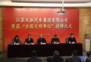2017年,天泓集團(tuán)在連續(xù)六年獲得“省文明單位”榮譽(yù)稱(chēng)號(hào)基礎(chǔ)上,在省國(guó)資委、蘇豪控股集團(tuán)領(lǐng)導(dǎo)的大力支持和幫助下,在全體職工的共同努力下,獲得了“全國(guó)文明單位”榮譽(yù)稱(chēng)號(hào),對(duì)文明單位創(chuàng)建工作提出了新起點(diǎn)、新要求,在以后的工作中,我們將繼續(xù)堅(jiān)持領(lǐng)導(dǎo)重視、措施落實(shí)、全員參與的工作機(jī)制,做到文明單位創(chuàng)建與提高業(yè)務(wù)水平相結(jié)合,與履行職責(zé)相結(jié)合,與樹(shù)立單位形象相結(jié)合,與提高職工隊(duì)伍素質(zhì)相結(jié)合,一如既往地內(nèi)強(qiáng)素質(zhì)、外樹(shù)形象,加強(qiáng)文明單位創(chuàng)建。