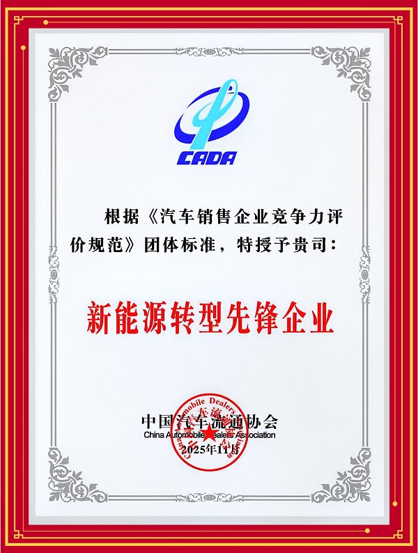 近日,2025中國(guó)汽車(chē)流通行業(yè)年會(huì)上,蘇豪天泓斬獲“新能源轉(zhuǎn)型先鋒企業(yè)”與“區(qū)域市場(chǎng)影響力企業(yè)”兩項(xiàng)大獎(jiǎng);同時(shí),公司圍繞國(guó)家新能源汽車(chē)購(gòu)置稅減免政策所開(kāi)展的服務(wù)保障工作獲央視《朝聞天下》欄目報(bào)道,體現(xiàn)了行業(yè)及媒體對(duì)公司經(jīng)營(yíng)成效與市場(chǎng)響應(yīng)能力的充分肯定。今年以來(lái),面對(duì)復(fù)雜多變的市場(chǎng)環(huán)境,蘇豪天泓緊扣高質(zhì)量發(fā)展主題,將經(jīng)營(yíng)提升貫穿于企業(yè)改革發(fā)展各領(lǐng)域、全過(guò)程,積極轉(zhuǎn)型突破,勇于向“新”而行,企業(yè)內(nèi)生動(dòng)力與綜合競(jìng)爭(zhēng)力持續(xù)增強(qiáng)。
